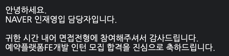 그리고 퇴사가 며칠 안 남은 시점에서, 네이버 전환형 인턴에 합격하게 되었다.