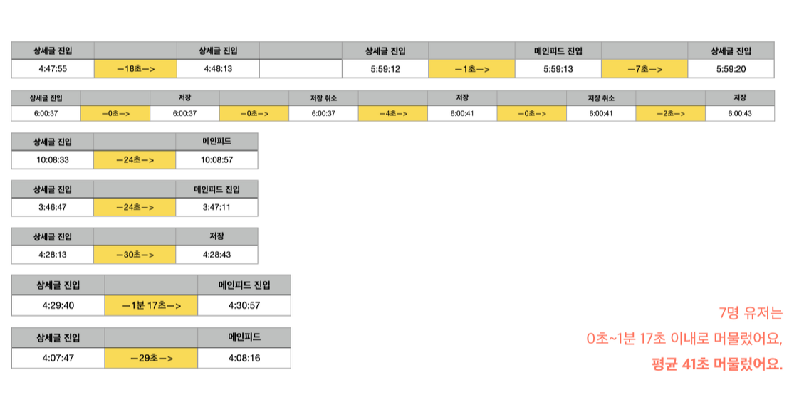 나머지 7명은 평균 41초 동안 상세 글에 머무른 것을 확인할 수 있었다.