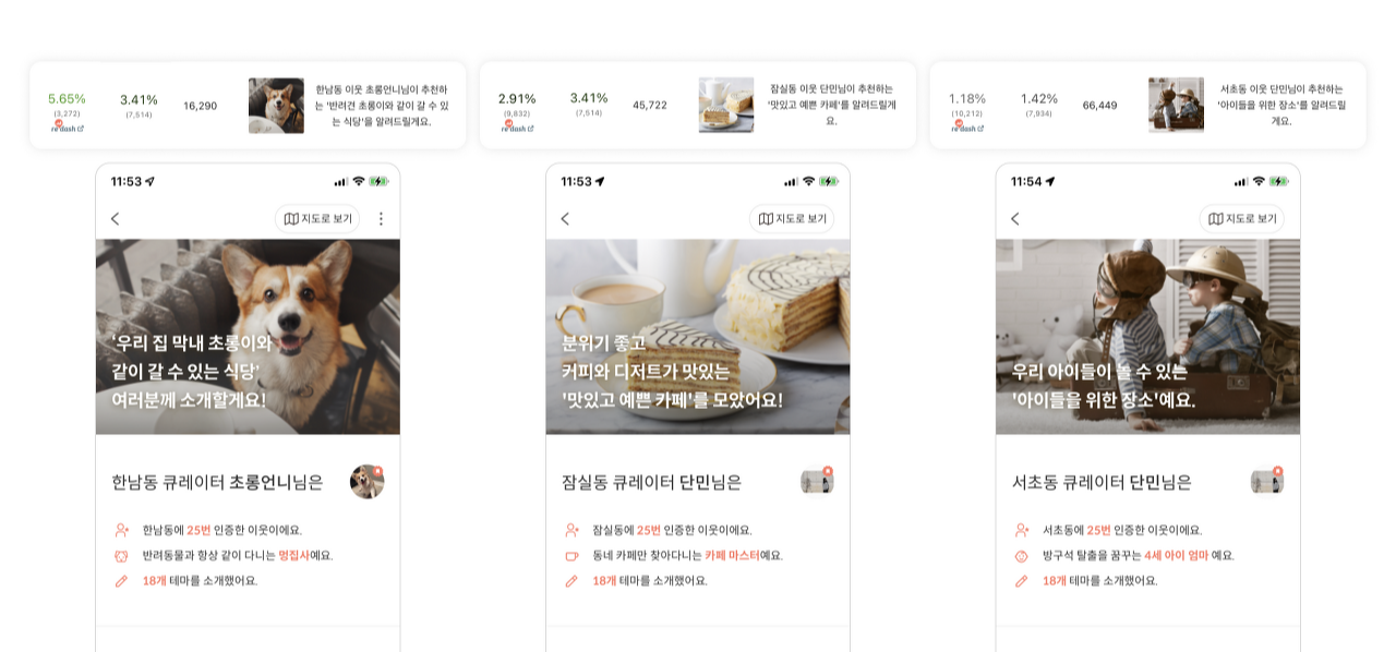 그렇게 이번에는 적은 수의 유저에게 채팅으로 보내는 방식이 아닌 풍성 피드로 띄우는 방식으로 검증을 진행했다.