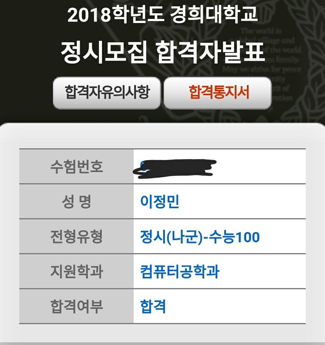 나는 경희대학교 컴퓨터공학과에 18학번으로 입학했었다.