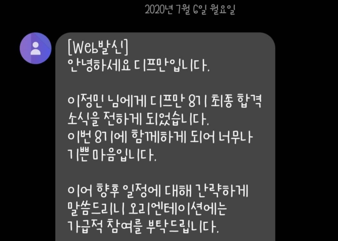 디프만은 8기를 거쳐 9기 운영진, 10기 운영진으로까지 참여했다. 그만큼 애정도 깊은 동아리다. 디프만 사이트를 만들기도 했었고 컨퍼런스를 진행하기도 했었다. 디프만에서 만난 인간관계가 현재 내 인간관계의 주축을 이루고 있을 정도로 디프만은 내 삶에 큰 영향을 끼쳤다. 디프만에서 난 정말 많은 성장을 이룰 수 있었다. 글을 쓰는 시점에서, 곧 11기가 시작될 예정이다. 그리고 나는 11기 명예회원(?)이 되었다 ㅋㅋㅋ