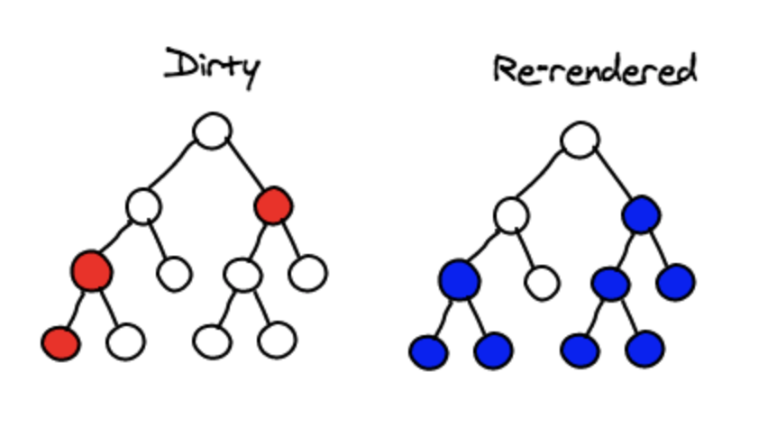 해당 노드의 상태가 변경된 컴포넌트라면 dirty 체크가 되어 있을 것이고, 해당 노드의 하위 컴포넌트의 속성 값을 업데이트하면 됩니다.