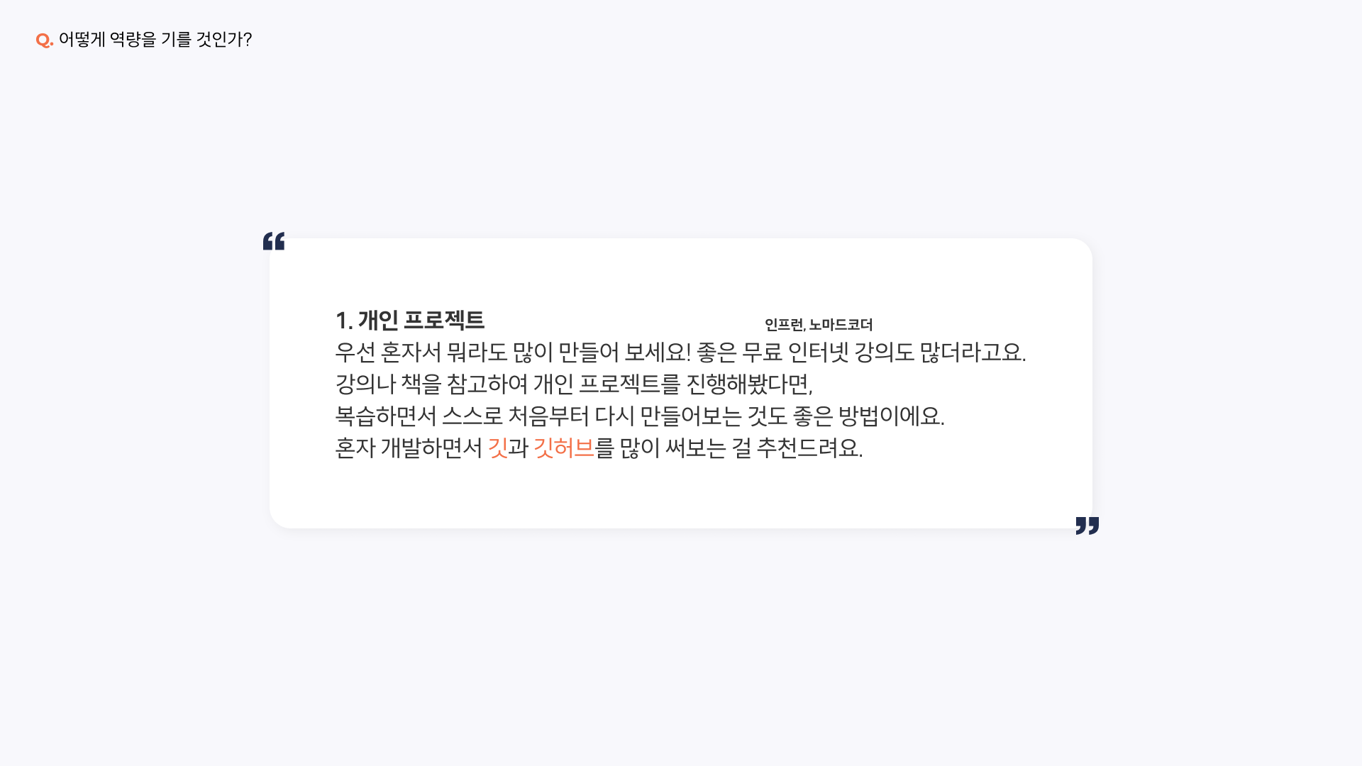 개인 프로젝트 경험이나 대외활동 경험은 필수적이지만, 인턴 경험은 필수적이진 않다고 이야기했다.