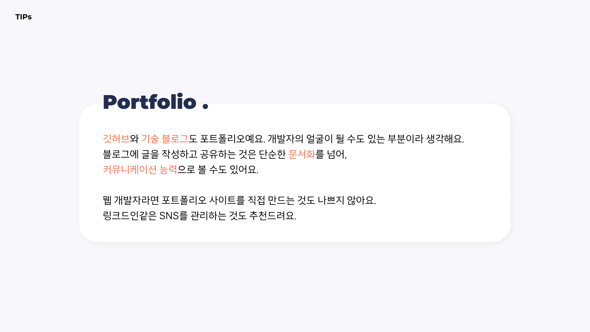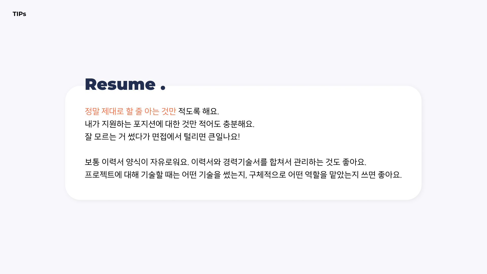 그다음으로는 이력서, 포폴, 면접에 대한 팁들에 대해 이야기했다.