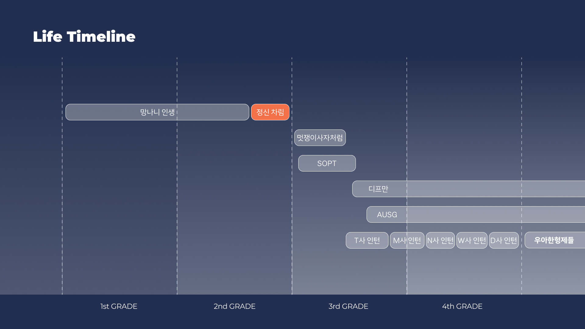이야기를 시작하기에 앞서, 내가 지나온 시간들을 시각적으로 보여주고자 했다.