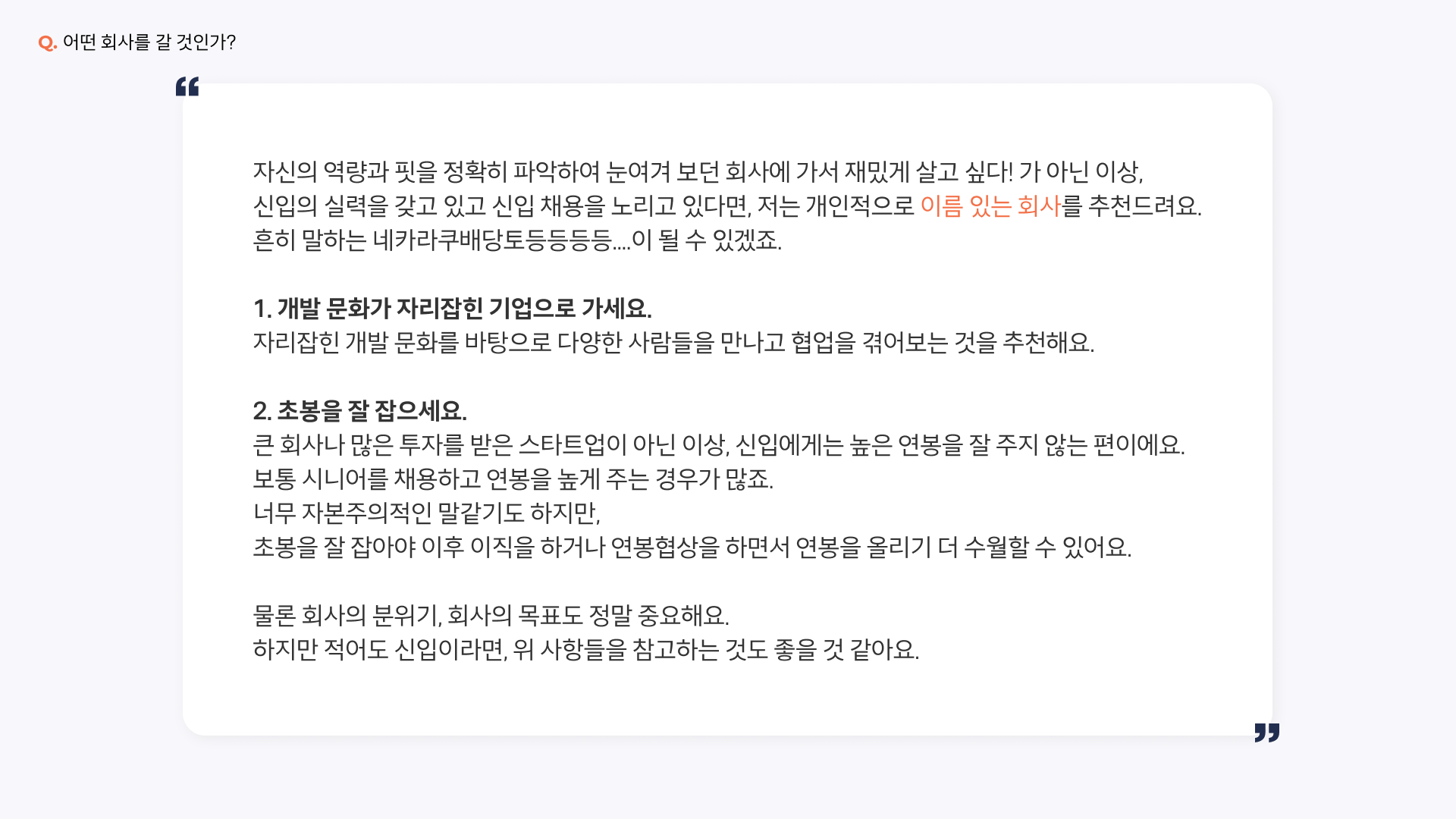 두 번째 생각, "어떤 회사를 갈 것인가?"